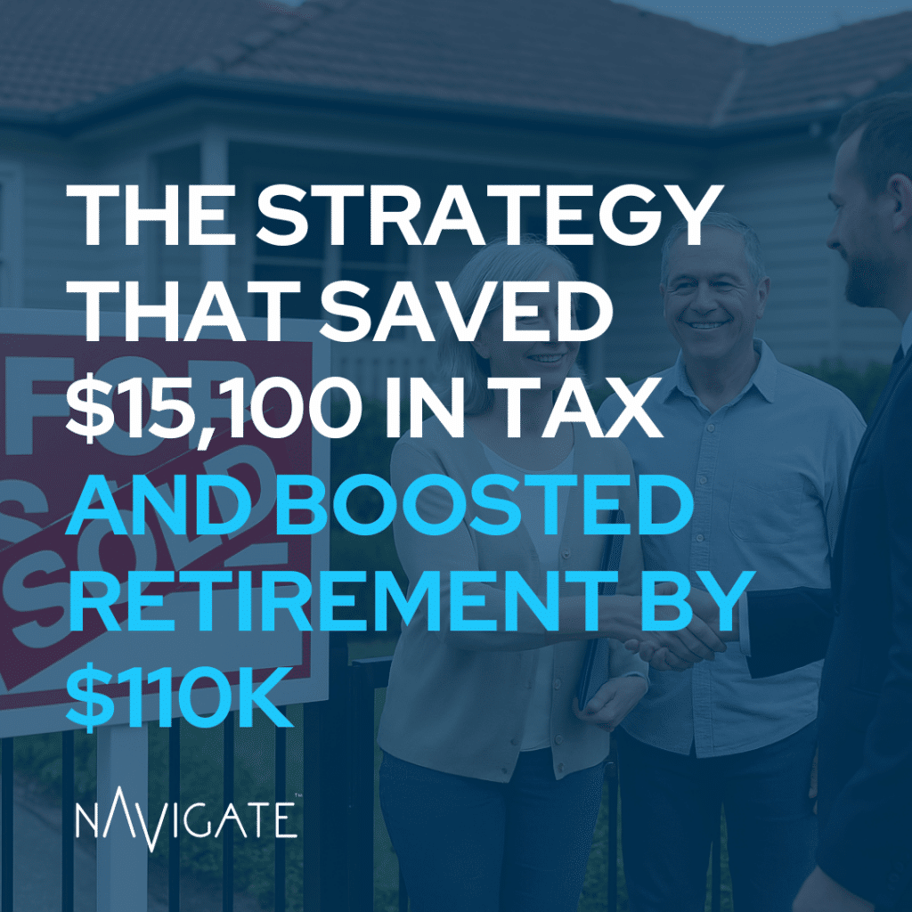 Smart CGT timing and super contributions helped our client save $15,100 in tax and boost her retirement by $110,000.